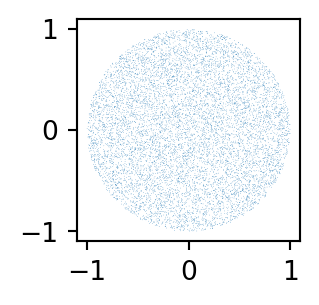 The following is the python code and annotations used to produce the uniform sampling within a circle example figures. It has been split into “slides” to match the format of the document, and the data marker sizes and figure sizes have been scaled down to fit on the slides.